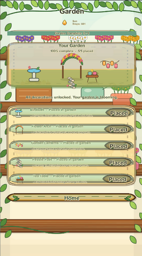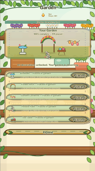 - - Unlockable garden decorations