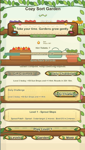 Welcome to Cozy Sort Garden, a relaxing portrait puzzle game where every tidy move helps a little garden bloom.